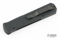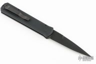 This knife features a black sterile blade.  The handle has a black aluminum frame with black hardware and black stainless steel tip up clip.    Comes with original box, pouch and papers. Has a couple light scratches on the clip, otherwise Excellent condition.