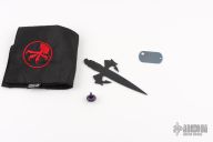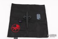 Marfione Custom Knives zippered case with titanium patch and drawstring bag.