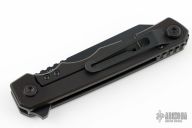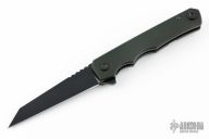 This QSE-8LT from Quartermaster Knives features a black coated wharncliffe style blade with notched thumb rest and flipper. The handle is comprised black coated titanium frame with matching tip up clip. Includes original box and papers. Numbered 114 of 300. Has a couple light scuffs, otherwise Excellent condition.
