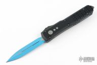 This Ultratech OTF automatic by Microtech features a D/E blue blade. Black aluminum contoured frame with black tip down stainless steel clip. Dated 09/2021 and s/n 5501. Comes with original box and papers. Excellent Condition.