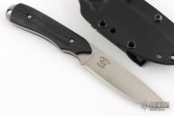 "The Talon, designed by custom knifemaker and talonite pioneer Robert Simonich of Clancy, Montana for CUDA/Camillus is the ultimate personal fixed blade knife. The classic drop point shape of the Talon is the perfect 'user' shape for such an advanced blade material. The ergonomic design and practical profile lend the Talon to a myriad of work-knife chores like skinning, boning, and light utility work." Milled black G10 handle. Full tang construction with blade thickness of 3/32" and depth of just under 1". Comes with a kydex sheath with TekLok. Light scratches are visible on the blade otherwise the knife is in excellent condition. Very comfortable in the hand. 1 of 300