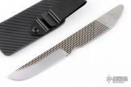 This Rasp Knife from David Clark features a "satin finished blade made from a rask, fileworked spine, .205" blade stock and .774" blade depth, full tang construction. Includes a kydex sheath. New from maker.