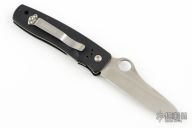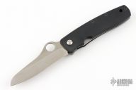 This Bob Terzuola designed knife from Spyderco has a satin finish blade and black aluminum scales. Clip is interchangeable to up or down positions according to user preference. Has a few light scuffs otherwise the knife is in excellent condition.