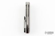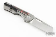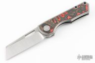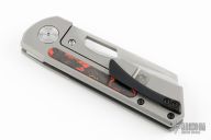 This Yeager by Brian Brown features a satin finished wharncliffe blade with thumbhole. The handle has a bead blasted titanium frame with red/orange carbon inlays, titanium pivot collars, tip up clip and backspacer. Excellent condition.