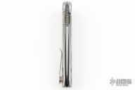 The 3-1/2" Sheepsfoot blade has been lengthened a little and is made of satin finished high-grade Bohler M390 stainless at 60-61 Rc., for superior cutting performance. The low-profile blade flipper propels the blade on IKBS™ ball bearings for a quick and smooth manual action. The handle sides are Titanium. Frame style lock. Measures 4-1/4" closed. Weighs 3.0 oz. Made in Maniago, Italy. Suggested retail is $385.00.