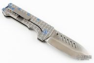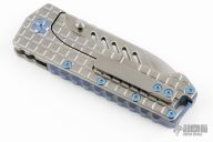 The PMP Kodiak, a true beast among folding knives. Its robust design features a beefy 4-inch M390 blade, measuring a substantial 0.196 inches thick, ensuring exceptional strength and durability. With a titanium frame lock mechanism and a weight of 9.98 ounces, this formidable tool is truly impressive in hand and sure to be a point of pride in any collection. Includes original card and case. Has scuffs and scratches, great condition otherwise.