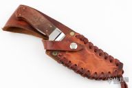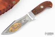 This NRA 2009 Knife of the Year by Canal Street Cutlery features a polished blade with etching on the front, .170" blade stock and 1.589" blade depth, full integral construction. The handle has an integral guard and leather scales with nickel silver pins. Comes with a hand tooled brown leather sheath. Has a few light scratches, otherwise excellent condition.