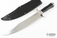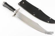 "Under-The Hill" was the notoriously rowdy riverfront district of Natchez, Mississippi at the beginning of the nineteenth century. So disreputable, it was seldom mentioned in the polite drawing rooms of the antebellum mansions that dotted the other side of town during the era when cotton was king. Our Natchez Bowie was born "Under-The-Hill" and takes its pedigree from those seedy taverns and dimly lit streets. Line-bred for battle, it’s the definitive fighting Bowie. Its long blade is perfectly shaped for strength, reach and leverage, and its significant heft is flawlessly balanced, giving it unparalleled liveliness and velocity. Combine all that with its wickedly razor sharp edge and you have a knife that pierces like a dagger, cuts like a razor and chops like a cleaver! The very best in materials and workmanship is what makes performance like this possible. The blade is made of VG-1 San Mai. The handle also plays a big role in the overall performance. It has a double quillon guard, bolster, and pommel made of stainless steel and black linen micarta grip. It will easily accommodate a wide variety of gripping methods while serving as a very formidable impact weapon as well. To complement the Natchez Bowie and to further cement its position as the quintessential fighting Bowie, it comes with a black leather sheath with belt stud and original box.