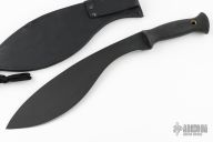 COLD STEEL Gurkha Light Kukri - one of the much admired Carbon V steel generation of CS blades - Model #35GLK. This is the most sought after Kukri in the Cold Steel lineup. Powerful distribution/forward balance design. It is paired with the factory correct 'heavy duty' leather sheath. There were two different leather sheaths made for the GLK, This one is the really nice, thick, heavy duty one. Model Introduced: 1998 , Discontinued: between 2002-2003 , Blade: 12" , Overall: 17", Blade Thickness: 1/8" Weight: 16.5 oz , Steel: Carbon V
