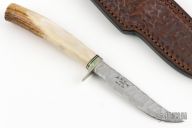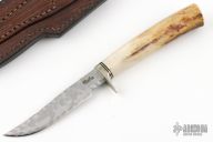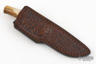 This custom fixed blade by Bill Cheatham was made for the AKCA for its 1991 club knife. It features a "Knapped" style blade, .121" blade stock and .734" blade depth, hidden tang construction. The handle has a nickel silver guard and a stag grip with black/nickel silver spacers. Comes with a hand tooled brown leather sheath. Excellent Condition.