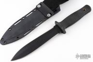 This Peacekeeper 1 from Cold Steel features a double edged black blade with .206" blade stock and 1.325" blade depth. The handle a Kraton grip over hidden tang construction. Lanyard hole in pommel. Comes with original sheath. Excellent condition.