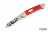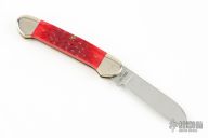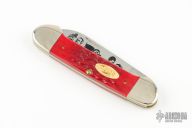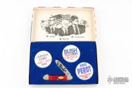 This Canoe by Case Knives has a polished blade with nail nick. The handle has nickel silver bolsters and cap, red jigged bone covers, brass liners and stainless spring. Comes with original box and pins. Has a couple light scratches, otherwise excellent condition. Limited Edition 1992 Election