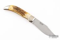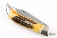 This Bulldog 5172 from Case Knives features a clip point mirror polished blade with nail nick. The handle is comprised of nickel silver bolsters and butt cap with stag covers over brass liners and stainless steel back spring. Includes a wooden display box from Case. Has some light scratches, otherwise excellent condition.