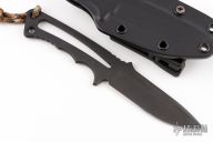 The Professional Soldier is a collaboration with designer Bill Harsey. Has a black PVD coated blade and handle with notched thumb rest and finger grooves, .166" blade stock and 1.075" blade depth. Comes with a kydex sheath and belt clip. Has scuffs and scratches, great condition otherwise.