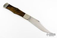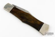 Unusual piece of advertising memoribilia - dated 1990, this is a large sales/advertising display model designed to be hung on a wall or in a window. Has a satin polished blade with false top edge and long pull nail nick. The handle has nickel silver bolsters, dymondwood covers, brass liners, steel spring. Has some scratches and oxidation, a couple of small cracks in the covers, otherwise good condition for its age.