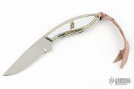 This Model 378 by Browning features a mirror polished drop point fixed blade with mother-of-pearl scales with abalone inlays in a nickel silver frame. Full tang construction with rounded spine and tang. High polished Japanese stainless blade is 1/8" thick and 7/8" deep. Comes with very nice fold-over leather case and original box. Excellent condition.