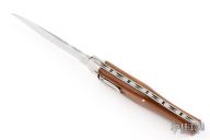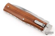 This lever auto from Mikov Knives has a mirror polished spear point blade with false top edge and fileworked spine. The handle has polished stainless steel bolsters and liners, rosewood scales. Action is smooth and strong. Excellent condition.