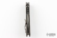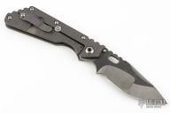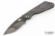 This XL framelock folder by Mick Strider features a dark stonewashed blade and a flamed titanium frame and tip up titanium clip. Includes a "Lock Bar Stabilizer" for maximum reverse lock retention. Nice detent, lockup and blade seating. New condition. Comes with a zippered case.