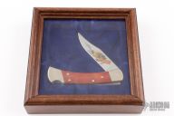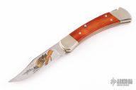 Ducks Unlimited 50th Anniversary commemorative Buck model 110. Beautiful etched blade with wood handle. Has some patina, otherwise excellent condition. Includes the original display box. #0391/1000