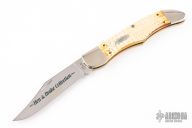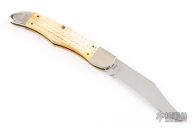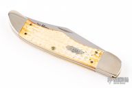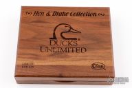 This slipjoint by Case with stag jigged bone covers and nickel silver bolsters, brass liners, stainless steel springs. Has a mirror finished blade with nail nick. Has a couple light scratches, otherwise excellent condition. Hen & Drake Collection "Pintails". Comes with original wood box and papers. Has some patina. Excellent condition.