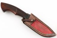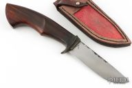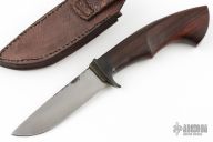 This Hunter by Last Knives features a hand rub satin finished blade with a visible temper line and forge finished flats, .210" blade stock and .990" blade depth, hidden tang construction. The handle has a blued mild steel guard and a rosewood grip. Comes with a brown leather sheath with stingray skin inlay and COA. New from maker.