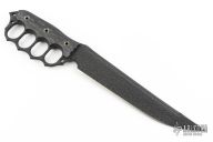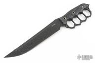 This Arrgone Assault by Busse features a black coated blade with a sharpened spine, .255" blade stock and 1.867" blade depth, full tang construction. The handle has black G-10 scales and a knuckle guard with extended skull crusher and lanyard holes. Excellent condition.