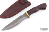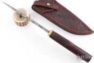 This Mini Borgrim by Last Knives features a hand rub satin finished blade with a nice hamon and carved spine and flats, .240" blade stock and 1.307" blade depth, hidden tang construction. The handle has a brass guard with rosewood grip. Comes with a hand tooled brown leather sheath and COA. New from maker.