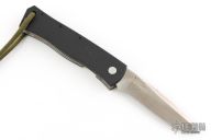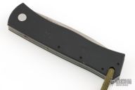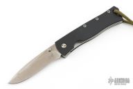 This Brend II combat folder by Benchmade knives features a satin finish blade, black anodized aluminum frame with a single stainless steel liner for the lock. Nice lockup and detent. Stamped with the benchmade Bali-song mark and the Brend Design mark. Comes with a zipper case. Has scuffs, scratches, patina throughout. Fair condition.