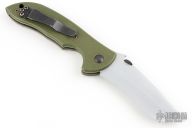 This production Commander linerlock folder has a recurved blade and green G10 handle with titanium liners. Wave feature was first used on the Commander. Dated 2000.