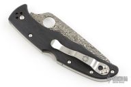 This Endura lock back folding knife by Spyderco features a VG10 core San Mai Damascus blade, thumbhole and notched thumbrest. The handle has pakkawood scales with stainless steel backspacer and 4-way reversible stainless steel clip. Comes with original box and papers. New condition.