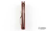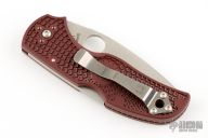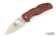 This Native 5 by Spyderco is the 2015 Forum knife. It features a satin finished blade with thumbhole and notched thumbrest. The handle has red FRN scales with stainless steel clip and backspacer. New condition with original box and papers.