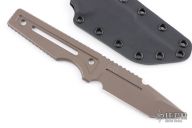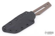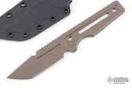 This Custom Tanto by ZU Bladeworxs features a brown blade with a sharpened top edge, .236" blade stock and 1.351" blade depth, integral construction with notched tang and hole pattern in handle. Comes with a kydex sheath. Excellent condition.