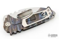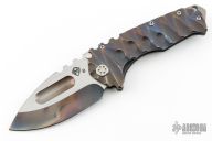 This Praetorian Ti by Medford Knife and Tool features a vulcan finished drop point blade with fullers and notched thumbrest. The handle is comprised of an anodized and textured titanium frame over a steel backspacer/glass breaker. The tumbled titanium pocket clip is positioned for right hand, tip up carry. 303-584 inside the frame. Includes a Medford box, COA dated November 29, 2021 and a hard case. Has some light scratches, otherwise excellent condition.