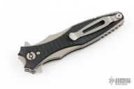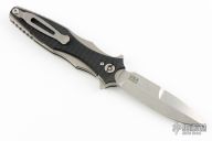 This Maximus by Hinderer Knives features a stonewash bayonet style blade with flipper. The handle has a textured black G-10 over stonewash titanium liners and tip up clip is reversible for right or left hand carry. Great blade seating, detent and lock up. Has couple light spots and scratches, excellent condition otherwise.