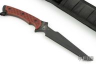 This Erebus features an S30V blade with Flat Black coating (SpartaCoat - PVD - DLC) and a red CE canvas micarta handle. Comes with a nylon belt sheath. Has some scuffs, great condition otherwise.