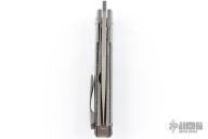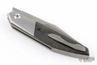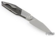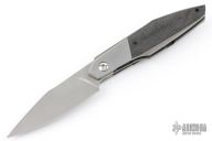 This Front Flipper by Samuel Jugieau features a bead blasted blade, front flipper opening. The handle has titanium bolsters, space corral Damascus scales with a titanium frame, backspacer and a tip-up pocket clip. Rides on bearings, nice detent, lockup and blade seating. Includes the original case and COA.  New from Maker!