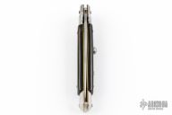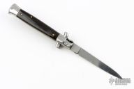 This Swivel Bolster features a satin finished flat ground blade. The handle has stainless bolsters, front and rear, buffalo horn scales, brass liners, stainless spring. Has some scratches, otherwise good condition.