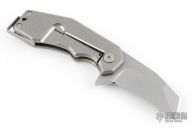 This GMT Stubby Razelcliffe features a stonewash finish blade with a sharpened front edge and a flipper. The handle has a stonewashed titanium frame with tail clip. Nice blade seating, lockup, and detent. Excellent condition.