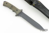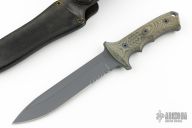 "This knife is known to the U.S. Army Special Forces as "The Yarborough" and to everyone else as "The Green Beret Knife". It is a no-nonsense, hardworking tool, designed by renowned knife maker and designer Bill Harsey, with function and manufacturing input from Chris Reeve. Made in Boise, Idaho by Chris Reeve Knives, the Green Beret Knife is a using knife that, just like the men for whom it was designed, is efficient, tough and uncompromising." Includes Reeve leather sheath (G Feller Casemakers). Has a couple light scuffs, excellent condition otherwise.