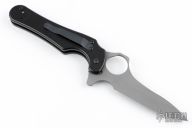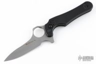 This Dimachaerus from Max Venom features a drop point bead blasted blade with 1.045" thumb hole and flipper. The handle is comprised of a cerakoted aluminum frame with black 4 way adjustable steel pocket clip. Button lock closure. Comes with a zipper case. Has a little blade play. Some light marks on blade, and handle. Great condition otherwise.