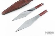 This set of 304 Throwing Knives by Case feature mirror polished blades and red plastic scales, .164" blade stock and 1.943" blade depth, full tang construction. Comes with a hand tooled brown leather sheath that holds both knives. Excellent condition.