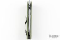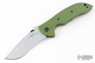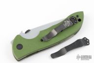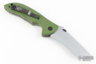 This production Commander linerlock folder has a recurved blade and green G10 handle with titanium liners. Wave feature was first used on the Commander. Dated 2000.