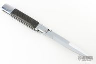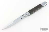 This Picklock Auto by Agasi Hambartsumian of Armenian Doctor Knives features a mirror polished bayonet ground blade with a false top edge. The handle has a polished stainless steel frame with fileworked stainless steel backspacer, carbon fiber scales with brass pins. New from maker.