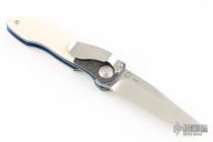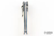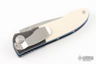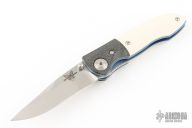 The 690-01 Elishewitz is a discontinued linerlock folder by Benchmade. It features a clip point satin finished blade with carbon fiber dovetailed bolsters, ivory paper micarta scales, and anodized titanium liners, tip down stainless steel clip. Comes with original box and papers. Excellent condition.