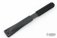 In 1988, he began making specialized knives for use by the military. This turned out to be fortunate turn of events, both for Mick and for the knife using world at large. Mick’s approach was to not get burdened by the weight of past designs. He started with a tabula rasa, a clean slate, informed only by his own experiences and knowledge of what a soldier needed in a knife. The knives he made didn’t look like the hunter-inspired knives seen in most PXs; instead they were almost brutish in their functionality: beefy, solid, and with unbreakable ¼” stock full tangs. These knives were the first indication of his innovative approach: in addition to their utilitarian design, the knives carried a subdued finish and subdued sheaths. No one carrying a Strider knife was going to be spotted because of sunlight glinting off of polished steel or a glossy leather sheath. Soldiers, policemen, and other men going into harm’s way couldn’t buy them fast enough. Mick sampled some good ideas, but made them great. For instance, he was not the first to wrap a knife handle with paracord, but he was the first to do it in a way that was tough enough for sustained infantry use. His knife line grew over the following years to include different varieties of fixed blades, all distinctive and many with specialized uses. But constant in all of them was a disregard for convention, and a desire to try new ideas. An example of this was the Ajax – it featured a very wide blade surface clearly designed to inflict damage. It drew on the weapons carried by Roman legionnaires, yet was modern and usable in the 21stCentury battlefield. Mick also worked on his technical skills, always striving to become better at the physical craft. At the 2002 Blade Show, a group of the best tactical knifemakers in the country decided to compete with each other to produce the most innovative and interesting fixed “battle blade” at the show. Mick’s entry, an incredible integral knife made out of ½” titanium stock with a zippered composite blade, gorgeous handles, and integral guard was the unanimous winner, and effectively retired the competition.
