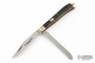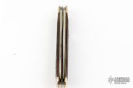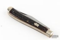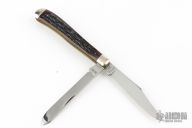This Winchester folder features two mirror polished blades. Nickel Silver front and rear bolsters with stag covers. Brass liners and steel springs. Original box. Excellent Condition.