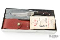 This Desert Prince by Case features a mirror polished blade with false top edge, .106" blade stock and 1.117" blade depth, full tang construction. The handle has nickel silver bolsters dymondwood scales. Comes with original box, papers and sheath. Has some light oxidation on the blade, otherwise good condition.