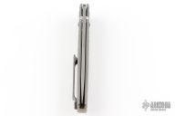This 781 Anthem by Benchmade features a tumble finished drop point blade with dual thumbstuds. The handle has a machined and integrally constructed frame with axis lock and matching reversible tip up clip. Comes with original box, drawstring pouch and papers. Has a couple light scratches on the clip, otherwise Excellent condition.