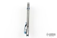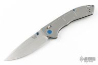 Featuring a milled titanium handle, the Narrows is as comfortable as it is lightweight. Measuring just over 4.5 inches long, your hand feels in control and never crowded as you set the Narrows to work. The vibrant blue anodized thumb studs, pocket clip, and hardware add a beautiful style to the pocket knife you'll treasure for a lifetime.