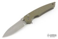 - Smooth G10 or carbon fiber slabs on the handle are crafted with a flared boat tail and the stonewashed blade with blackened hardware and two-piece titanium pocket clip complete the knife’s almost mystical aesthetic.